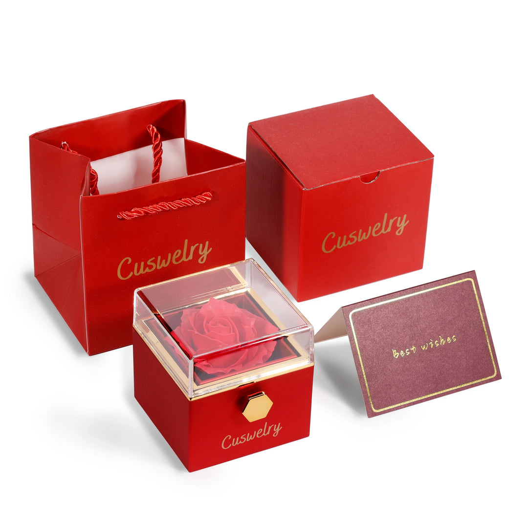 Add an extra surprise to your gift with an unforgettable unboxing experience, preserving your love forever with eternal rose. This Gift Box Set Includes: Rotating Eternal Rose Gift Box, Gift Bag, Packaging Box, Greeting Card.